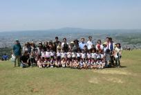 1番に出発した年長さんは、山登りとあって、元気なお父さんがたくさん参加されていました。登山口のゲートをくぐると、目の前にどっしりとした緑の山がそびえています。急な階段を一歩一歩踏みしめて登ると、汗が噴出します。でも少しずつ眼下に広がる景色に目をやりながらみんながんばりました。そしてついに最初の山を登りきると、素晴らしい奈良盆地の景色が広がります。