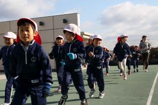 今日から耐寒マラソンを始めました。初日は風もなく、穏やかなお天気のもとで走ることができました。年少、年中、年長にそれぞれ分かれて、鳩の広場や屋上で1,2,1,2、の掛け声が響きます。走り終えると、「身体がぽかぽかしてきたね!」「楽しかった、もっと走ろうよ!」などと頼もしい話も聞こえてきました。寒さに負けず、最後まで頑張りましょうね!!
