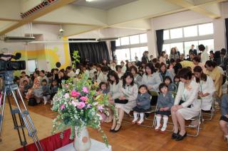 春の清清しい日にたくさんの新しい仲間が入園しました。おうちの方に手を引かれて坂道を上がってくる姿は、まだまだ小さくて、通園カバンが背中からはみ出しそうです。でも優しい年長さんや先生達が待っています。月曜日から元気に登園してくださいね!