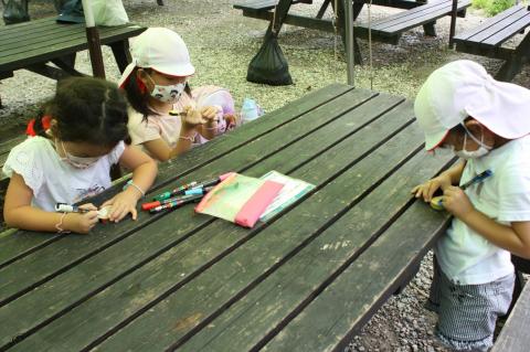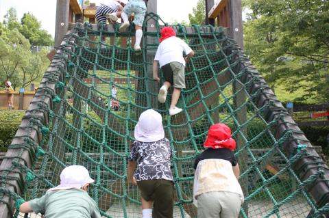 カレーを食べた後は、大型遊具で遊びました。幼稚園とはまったく違うたくさんの遊具がたくさんあり、年長組のみんなで楽しい時間を過ごすことができました。お泊り保育に行く事は出来ませんでしたが、夕方までたっぷり遊んで子ども達にとって楽しい夏の思い出の一つになったことでしょう♬