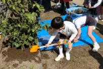 年長のみんなで卒園記念樹のレモンの木を園庭に植えました。一人ずつ「大きくなあれ」と心を込めて土をかけていきましたね。「これから小さい組のお友達と先生で育てていくので、また機会があれば見に来てね」と話をすると「時間あったら見に来るわ!」と言っていた子ども達。この木が大きく育っていくのを幼稚園のみんなで見守っていきますね。
