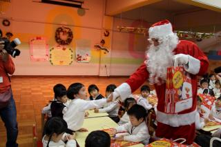 今日は待ちに待ったクリスマス会。サンタさんがお手紙を下さってから、今か今かと待ち続けていました。みんなのところにサンタさんが現れると、大歓声が上がります。大きな白い袋から素敵なプレゼントをひとりずつ渡してくださいました。帝塚山っ子はみんなよい子で良かったね!