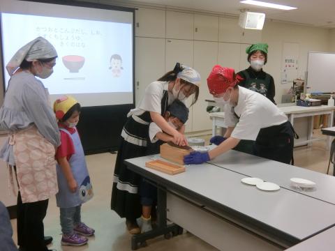 合わせ出汁を使ったおすましをいただいたり、実際に鰹節を削る体験をしたりして親子で楽しい時間を過ごしました。素材の味を堪能することの出来る機会になりましたね。