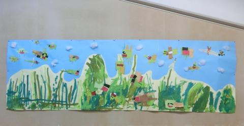 お部屋には、お話の場面の情景が壁面制作で描かれています。
