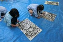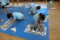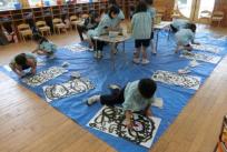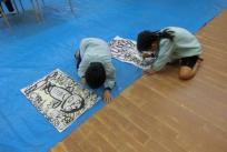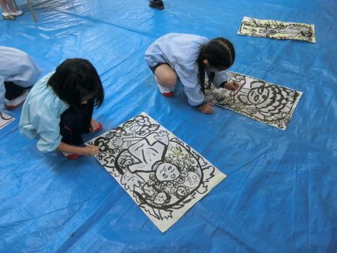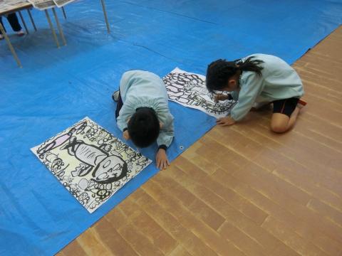 みんなが墨で描いた大仏様の絵に色を塗りました。水彩絵の具6色を使い、墨にかぶらないように丁寧に進めていました。