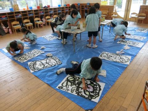 「綺麗に塗らないと!」「色が混じらないように…」と、色を塗ることでさらに素敵な作品に大変身!絵画活動中の保育室はシーンとなり、子どもたちの集中力には本当に驚かされました。