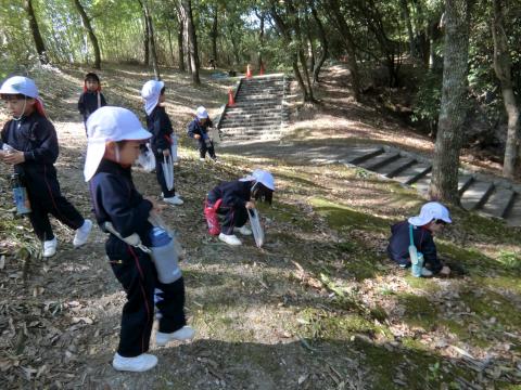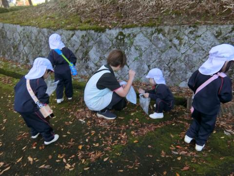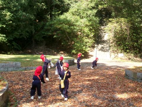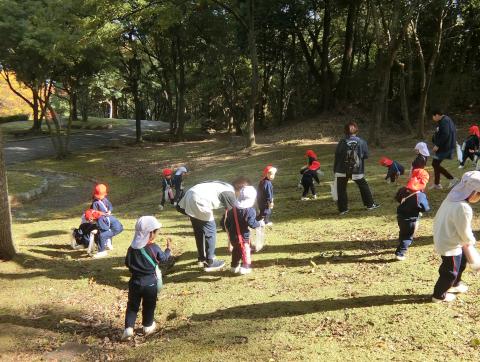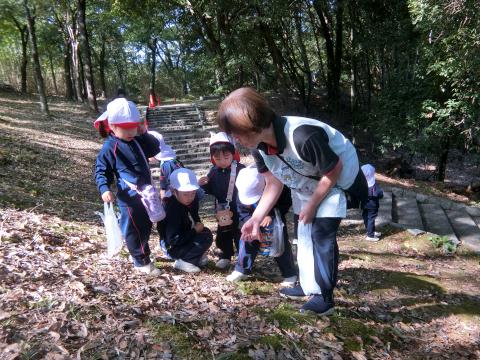 秋の心地よいお天気の中、大渕池公園へどんぐり拾いに出かけました。公園の遊歩道を歩きはじめると、早速、どんぐりを見つけた子どもたちは、「どんぐり!」「こっちにもあるよ!」と嬉しそうな声をあげながら夢中になって拾い集めて、袋の中に大事そうに入れていました。