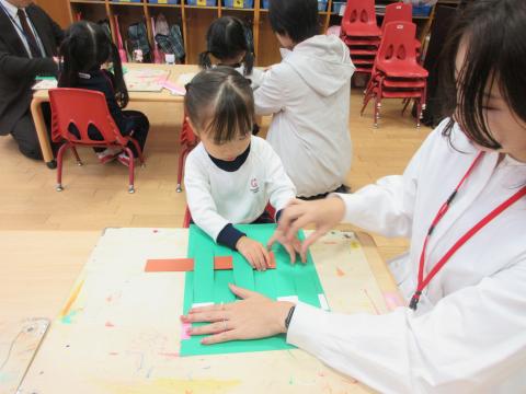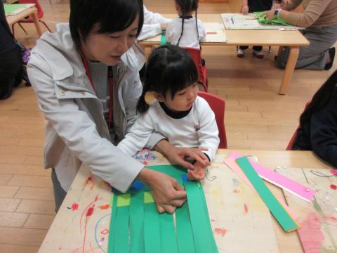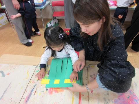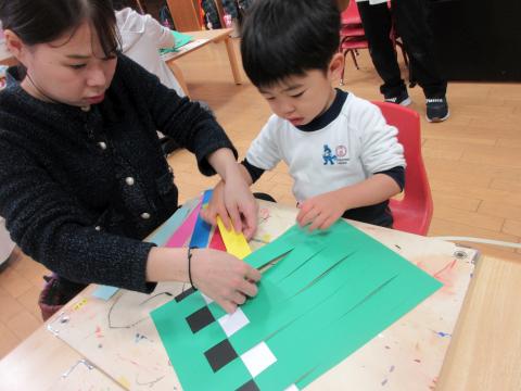 それから、12月の制作展の親子制作をしました。お家の方と一緒に楽しんで作りました。