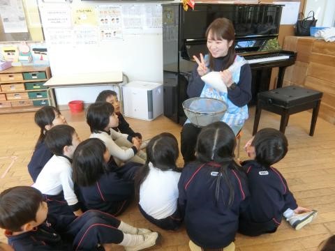 明日のお餅つきのために年長組はもち米を研ぎました。田植えや稲刈りを経験し、お米が出来るまでは長い時間がかかることも知った子どもたちは、一粒もこぼさないように一人ひとり丁寧に研いでいましたね。きっと美味しいお餅になることでしょう。