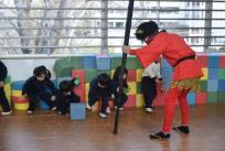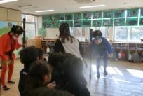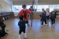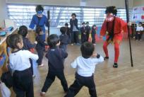 お腹の中にいる泣き虫鬼・怒りんぼ鬼・病気鬼を追い払う為にはと、逃げながらも豆を必死に拾い、鬼に向かって投げて頑張り、ついに鬼は退散!! 「やったー!」と大喜びの子どもたち。無事、鬼を追い払い、たくさんの福を呼び入れ、一年の健康を祈願できました。