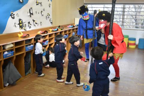 今日は節分の日。帝塚山幼稚園でも豆まきを楽しみました。