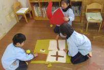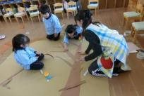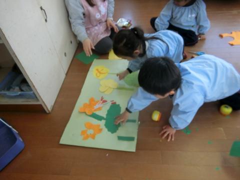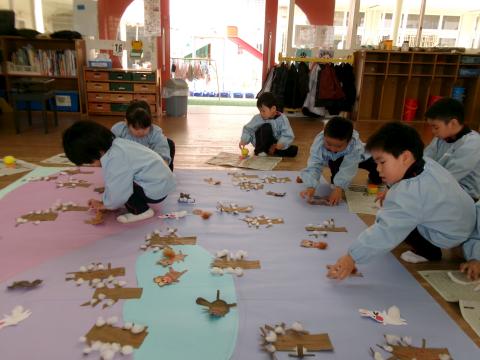 “雪が沢山積もった木”“お家”“あまい蜜の花”など、道具作りでも子どもたちは、制作する道具のイメージがしっかりとあり、それぞれに想像力を働かせて形にしていました。