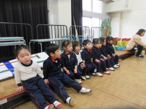 2歳児クラスは、幼稚園の生活発表会のお芝居を見せてもらいました。