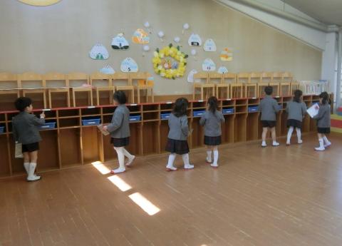 自分がお世話をするお友だちの靴箱やロッカーなどを確認し、「もう覚えた!」「大丈夫!」と頼もしい声が聞かれます。優しいお兄さんお姉さんが待っていますよ。