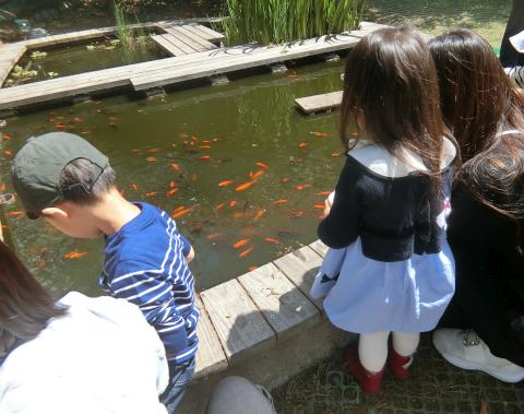 他にも園庭では金魚に餌をあげたり、ボールや三輪車でも遊びました。