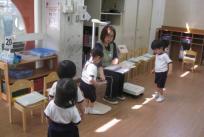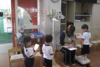 身体測定の前には、『上靴を脱ぐこと』『先生にお帳面を渡すこと』『身長計や体重計に順番に乗ること』など、測り方を教えてもらいましたね。