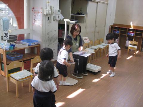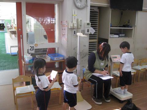 今回は、お部屋で保健の先生に身長と体重を測ってもらいました。