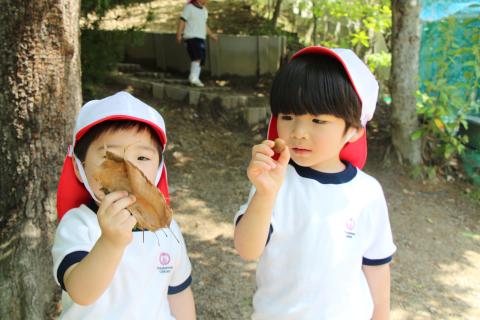 お部屋では、「だんご虫さんどこかな?」と、葉っぱめくって探し、「見~つけた!」手の上を大事そうに歩かせて大喜び。帝塚山幼稚園に入ってまもなくの子どもたちですが、小さな虫が愛おしく思い始める子が増えてきました。