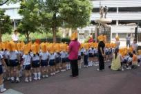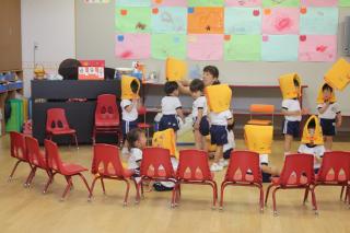 地震を想定した避難訓練を今年度初めて行いました。緊急地震速報のアナウンスが流れると、幼稚園全体に緊張感が走りました。今日は2歳児クラスりす組の子ども達も一緒に参加しての訓練です。約2分間で園舎の外には避難できましたが、実際に起こるかもしれない地震に備えて、これからもより安全にそしてスムーズに避難できるように訓練を積み重ねたいと思います。