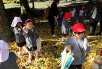 バスを降りたら、大きなイチョウの木の下に葉っぱがいっぱいでした。「ワーッ、黄色だらけ!」子ども達はいっせいに走り出して懸命に拾います。