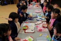 お弁当の時間はみんなの大好きな時間のひとつです。準備ができたら、♪おべんとう、おべんとう、うれしいな♪ と歌って、いただきます!