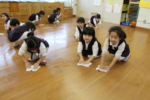 明日で平成26年度の幼稚園生活はおしまいです。みんな4月からは、ひとつ大きいクラスになりますので、お部屋の大そうじをしました。