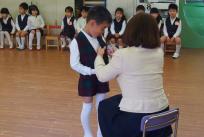 担任の先生から新しい名札をつけてもらって、みんな嬉しそうでした。