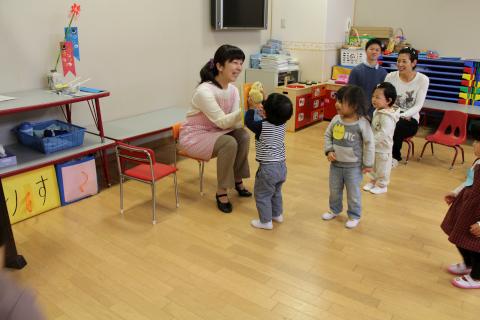 5月から、りす組、うさぎ組に入るお友達がお母さんと一緒に元気にお部屋に遊びに来てくれました。