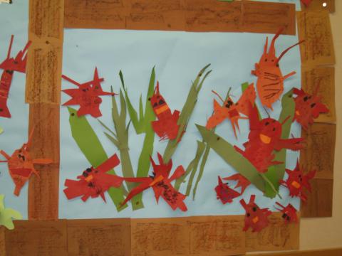 すみれ組のお部屋の中は、元気な子ども達の赤づめザリガニでいっぱいです。