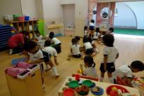 ひまわりもフェンスを越える高さにまでのび、「大きくなったなぁー。」とびっくり!!大学の “まつぼっくり” にも遊びに行き、お昼からは、2歳のお部屋で楽しく遊んだ子ども達です。