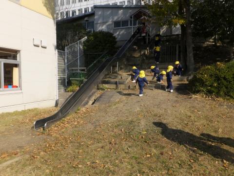 30日は久しぶりのぽかぽか日和。りす組のお友だちは、元気に園庭に飛び出しました。大好きなすべり台をすべったり、鉄棒でブラブラゆれたり、ボールをキックしたり、思いっきり身体を動かしました。フープで遊んでいると、年少組のお友だちもやってきて一緒に電車ごっこをして遊びました。「乗せてください」 「どうぞ」 優しい車掌さんにみんな大喜び。「また一緒にあそぼーね!」 と約束しました。