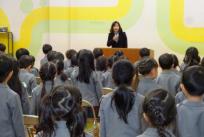 リズム室で全学年揃って終業式をしました。園長先生のお話があり、「2学期は、運動会、大根抜きの遠足、葉っぱ拾い、制作展、クリスマス会、お餅つきなどいろいろな行事がありましたが、頑張った人?」 と聞かれ、「はい。」 と手を挙げていたみんな。「そうですね。みんな頑張ったから、いい顔になりました。」 と園長先生に褒められ嬉しそうでした。そして、冬休みのお約束を2つしました。「お家の人のお手伝いをする。」 「お家の人の言うことを聞いて、たくさん遊ぶ。」です。このお約束を守って、楽しい冬休みを過ごしましょう。そして、3学期の始業式に元気な顔を見せてくださいね。