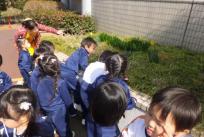 ぽかぽかいい天気の日。2歳児クラスのうさぎ組のお友だちは、幼稚園の通園路の花壇にチューリップを見に行きました。まだまだお花は咲いていないけれど、大きな葉っぱが開き始めていました。 「チューリップの赤ちゃんだよ!」 「かわいいね!」 「ここにもあるよ!」 とみんな嬉しそう。他にも春が見つかるかな? 別の花壇に黄色の大きな水仙を見つけました。 「もうすぐ春ですよ!」
