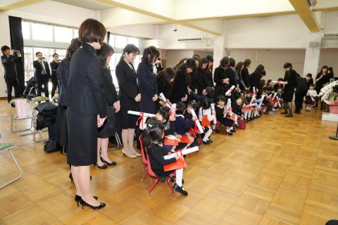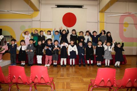3月3日は、2歳児クラスの修了式でした。みんなで一生懸命練習したお歌をお家の方に聞いていただきます。いつもと違う雰囲気にみんなどきどき! でも、頑張ってしっかり大きな声で歌えました。修了証書をもらう時も 「はい!」 と立派にお返事ができましたよ!みんな春から 「ようちえん」 です。楽しみですね。
