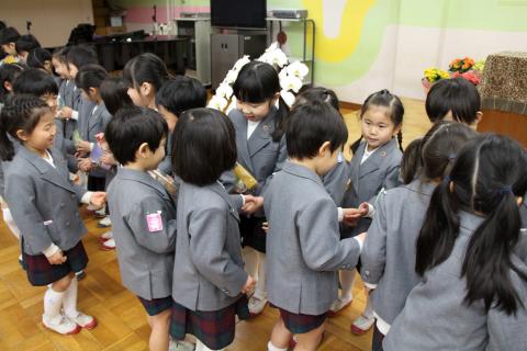 年長児を送る会がありました。年中さんは、「いっぱい遊んでくれてありがとう。小学校へ行っても頑張ってください。」 の言葉を、年少は、お世話になったお礼のプレゼント (カップケーキのネームスタンド) を贈りました。年長さんが喜んでくれてよかったですね。