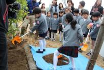 卒園式の日、卒園児の保護者から幼稚園に記念品が贈られました。今年度はレモンの木をいただき、卒園児たちが、先日 「たくさんなってね。」と、たくさんレモンが実ることを願って植樹しました。