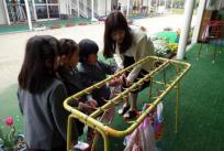 担任の先生から新しい名札をつけてもらってみんな嬉しそう! 始業式では、新任の先生の紹介の後、園長先生のお話を聞きました。その中で、『元気よくあいさつをしましょう。』 『身だしなみを整えましょう。』 『楽しいことをいっぱい見つけましょう。』 と、三つの約束をした子どもたち。年長組には、『自分でよく考えて、できる事を増やしましょう。 』 と、もう一つ付け加えられましたが、「はい。」 と返事をした年長組の子どもたちには、“よーし、やるぞ! ” という意気込みが感じられ頼もしかったです。さあ、みんな元気いっぱい頑張りましょう!!