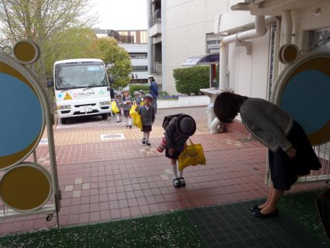 ひとつ学年が大きくなり、喜びいっぱいの子どもたちが元気に登園してきました。今日から新学期のスタートです。