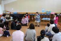 園庭では、砂遊びやボール遊びをしたり、お池の金魚に餌をあげたりして楽しかったですね。たくさん遊んでくれて有難うございました。また、初夏の体験保育にも遊びに来てくださいね。