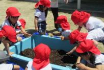「黄色いお花が咲いてる!」 と、嬉しそうな声。年少さんの植えたプチトマトに黄色い花が咲いてきました。先週、先生の説明を聞いて、植木鉢に両手で栄養たっぷりの土を入れ、優しく植えた苗です。 「大きくなあれ。」 「早く食べたいね。」 「プチトマト、出来たらママにあげる。」 と、毎日お水をあげて生長を楽しみにしている子どもたち。 おいしい、おいしいプチトマトになりますように ♪♪