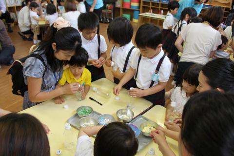 11日(土)は、帝塚山幼稚園に入園前の小さなお友達がたくさん遊びに来てくれ、年長組さんの楽器の演奏や歌を聴いたり、一緒に歌を歌ったり、楽器を鳴らして遊びました。大太鼓、小太鼓、タンバリン、鈴、マリンバ、マラカス、ギロ、ウッドブロック等、初めて見る楽器もたくさんあり、嬉しそうに楽器遊びをしていたお友達。その後、マラカスを作り、みんなで音楽に合わせて楽しそうに鳴らしていましたね。大勢のご参加有難うございました。