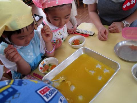 - 年長 食育 七夕ゼリーの型抜きをしたよ♪