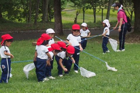 先日、雨天のため延期となった虫取りは12日(月)に行ってきました。子どもたちは心待ちにしていたようで、朝から「早く行きたいな~!」「今日はバスに乗っていくんだよね!」とウキウキしていました。新しくなったバスに乗り込み、楽しい会話をしているとあっという間に到着です!それぞれが虫網を手に取り、いざ虫取りへ。広い原っぱを思い切り駆け回り、バッタやコオロギを捕まえようとしますが・・・これが難しいのです。虫たちと追いかけっこをしていると、だんだんコツを掴む子も出てきて、虫かごが秋の虫たちで賑やかになりました。お部屋では、捕まえたコオロギが美しい音色を響かせています♪