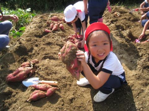 18日(火)の素晴らしい秋晴れの日、全学年で学園農園へお芋掘りに行きました。「1番おっきいお芋掘る!」「たくさん掘れるかな?」と、ワクワクドキドキの子ども達。学園農園に着くと、お芋を自分で見つけて掘ることが楽しくて仕方がないといった様子で、みんなの目が輝いていました。お芋が大きくてなかなか抜けなかったり、手が泥んこになったりしましたが、「よいしょー!」と力一杯頑張って、たくさんのお芋を掘ることが出来ました。とても楽しい時間になりましたよ。どんなお芋料理になるのかな?楽しみですね♪