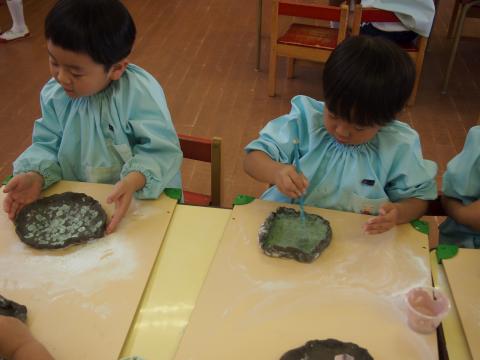 年中組の陶芸は、豆川雅比古先生に教えて頂きながらお皿を作りました。