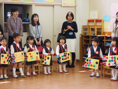 4月22日(土)は、今年度はじめての参観日でした。年少 ・ 年中はお家の人とこいのぼりを作って持って帰りましたね。年長は、大きな白い布に絵の具でお絵描きや手形をつけて模様を描きました。素敵な模様ができた大きな布は、担任の先生がミシンで縫ってこいのぼりにしてくれますよ。出来上がったら幼稚園であげましょう。楽しみですね。