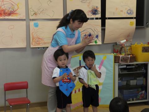 6月と7月のお友だちのお誕生日会をしました。お母さんに歌を聞いてもらったり、お名前を発表してお祝い