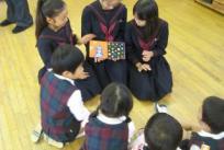 10月の最後の英語クラブに小学校の国際交流部5年生が来て、子ども達に絵本の読み聞かせをしてくださいました。お話を手作りのペープサートなどを使って、楽しく英語で聞かせてもらった子ども達です。ちょっぴり緊張しながら、でも興味津々の様子でした。