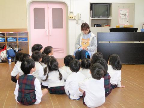 寒さも本番となり、風やインフルエンザの流行期に入ってきましたので、保健の先生より各クラスで “くしゃみ・咳のエチケット” についてお話がありました。「くしゃみや咳をすると、バイキンってこんなに飛ぶんだ!」と驚いたり、「バイキンを飛ばさないようにするにはどうしたらいいの?」と聞かれて、「マスクをする」「手で押さえる」と答えていた子どもたち。