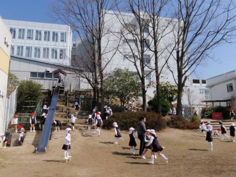 暖かな日ざしの中、元気いっぱい園庭で遊んでいる子ども達です。だんご虫を見つけたお友だちもいて、「あたたかくなったから起きてきたんだね」 「おはよう。だんごむしさん」 と、嬉しそうに声をかけていました。